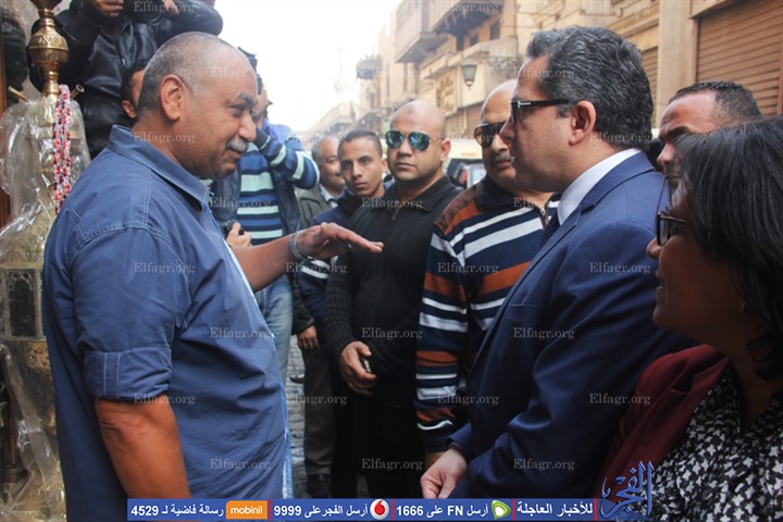 منذ قليل، بتفقد شارع المعز لدين الله الفاطمى، يرافقه فيها محمد عبد العزيز مدير عام