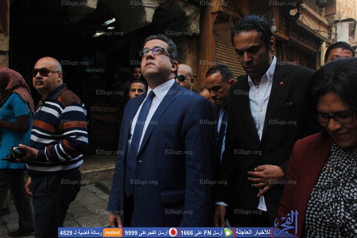 الدكتور خالد العنانى، وزير الآثار، منذ قليل، بتفقد شارع المعز لدين الله الفاطمى،
