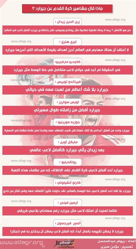 انفوجرافيك.. ماذا قال مشاهير كرة القدم عن أسطورة ليفربول "جيرارد" ؟