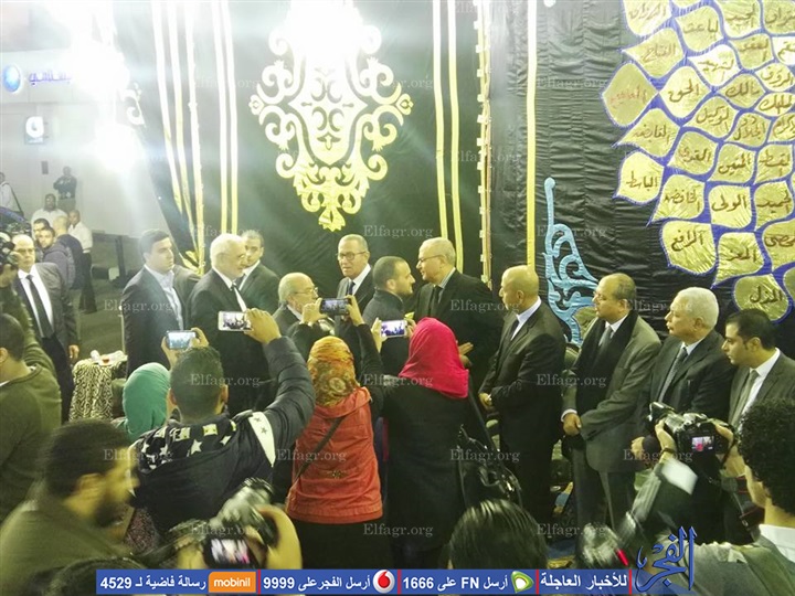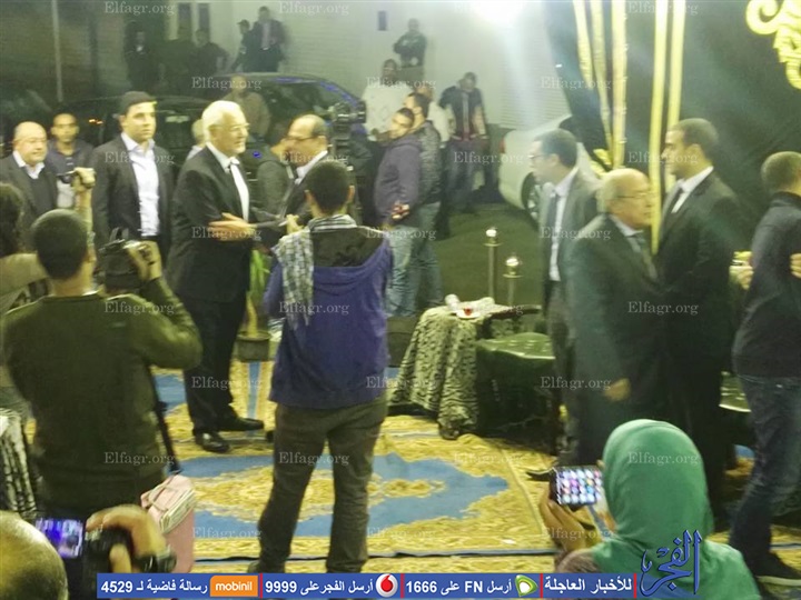 القوية، والمرشح الرئاسي السابق، لمسجد عمر مكرم بالتحرير، لحضور عزاء يحيى الجمل نائب