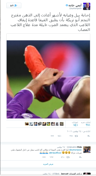 عبر تويتر، جاءت على النحو التالي: "إصابة جاريث بيل وغيابه لأشهر أعادت إلى الذهن