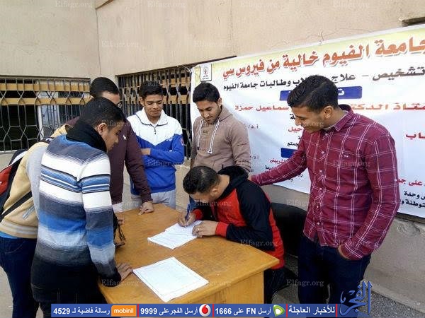 صرح الأستاذ الدكتور أحمد على جمعة رئيس قسم الأمراض المتوطنة والكبد أن الحملة تشمل ثلاث اتجاهات: ( التوعية – التشخيص – العلاج ) ، مؤكدا أن جامعة الفيوم تعتبر ثانى جامعة على مستوى جامعات مصر تقوم بتنفيذ هذه الحملة أملاً الاكتشاف المبكر وعلاج المصابين وذلك لإعتماد جامعة الفيوم خالية من فيروس سي.