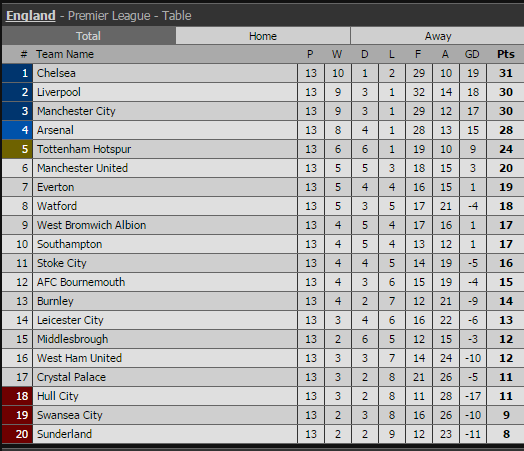 ترتيب الدوري الإنجليزي بعد 13 جولة.. تشيلسي يتصدر وأرسنال في المركز الرابع