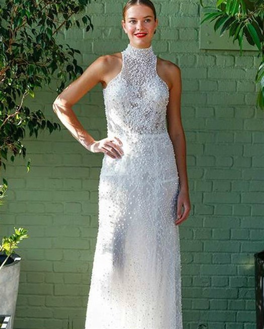 9- فستان من دون أكمام بالياقة العالية للعروس الجريئة Francesca Miranda