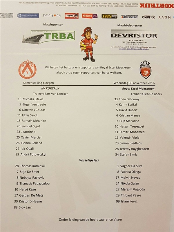 تشكيلة فريقه الأساسية، التي ستواجه فريق كورتراييك، ضمن منافسات الجولة الثانية