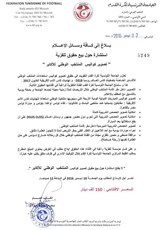 كشف الاتحاد التونسي لكرة القدم، عن نيته بيع كواليس تصوير