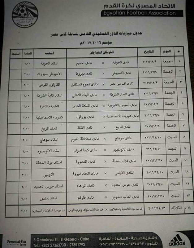 قرر اتحاد الكرة إقامة مباريات دور ال 64 من كأس مصر يومي الجمعة والسبت المقبلين على ملعب الأندية المذكورة أولاً.