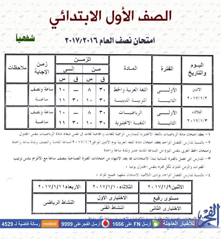 ننشر جدول امتحانات نصف العام للمرحلة الابتدائية في البحيرة (صور)