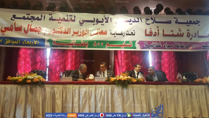 وفى ختام الحفل قام المحافظ بتسليم عدد من كراتين المواد الغذائية والبطاطين للأسر الأولى بالرعاية، وقام رئيس مجلس إدارة جمعية صلاح الدين الأيوبي بتسليم درع الجمعية للمحافظ.