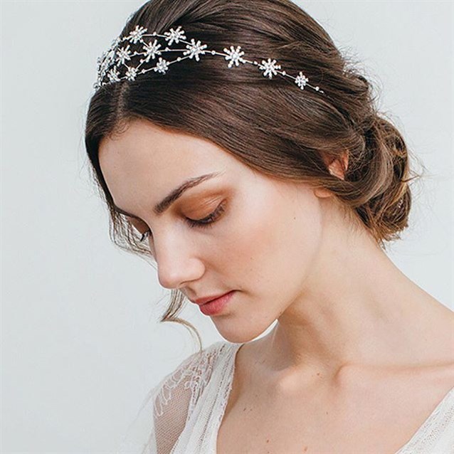 2- اختاري هذا الاكسسوار الرائع للعروس مع الشينيون المنخفض
