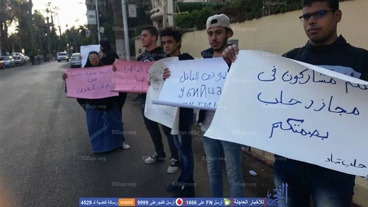 أمام السفارة الروسية بالقاهرة، احتجاجا على المجازر التي تشهدها مدينة حلب بسوريا.