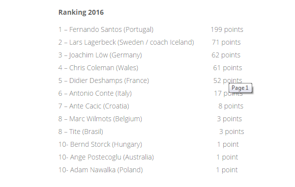 جوائز التأريخ والإحصاء.. "سانتوس" أفضل مدربي المنتخبات في 2016 (إنفوجراف)