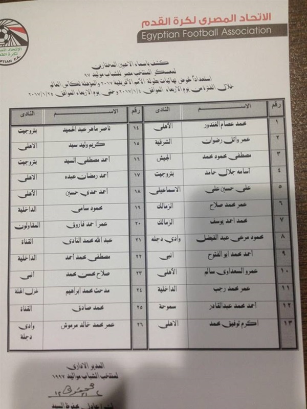 تعرف على قائمة منتخب الشباب في معسكر يناير