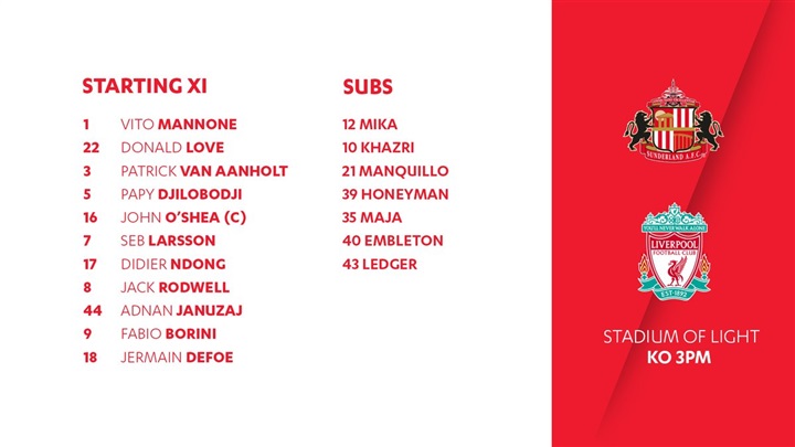 جاء تشكيل ليفربول وسندرلاند كالتالي :