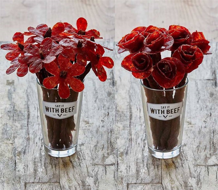 "Meat roses" هدية رومانسية تهديها لشريكتك التي تحب الطعام (صور) الفجر الطبي الثلاثاء 10/يناير/2017 - 12:50 م 1/10/2017 12:50:00 PM Meat roses ابتكرت إحدى الشركات المتخصصة في صناعة اللحوم، طريقة جديدة لتقديم اللحم المجفف علي شكل باقة زهور، يمكن تقديمه إلى الأصدقاء والأحبة من محبي الطعام. لحوم زهور roses Meat