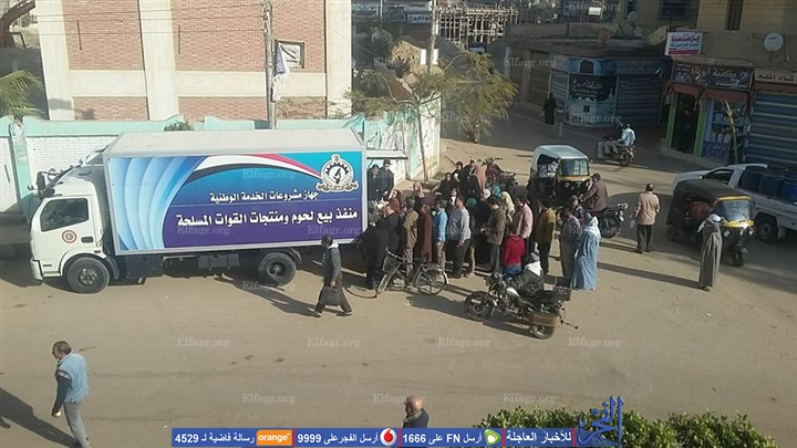 دفع جهاز الخدمات العامة للقوات المسلحة وجهاز الخدمة الوطنية، اليوم الخميس، بسيارة مُحملة باللحوم المبردة والسلع الغذائية بمدينة بيلا التابعة لمحافظة كفر الشيخ، اليوم الخميس،،وذلك لتخفيف العبء عن المواطنين، بعد ارتفاع أسعار اللحوم والسلع الغذائية، حيث تبيع السيارة المنتجات الخاصة بالقوات المسلحة من لحوم وأسماك وسلع مختلفة بأسعار "مخفضة"، تحت إشراف كامل من رجال الجيش.