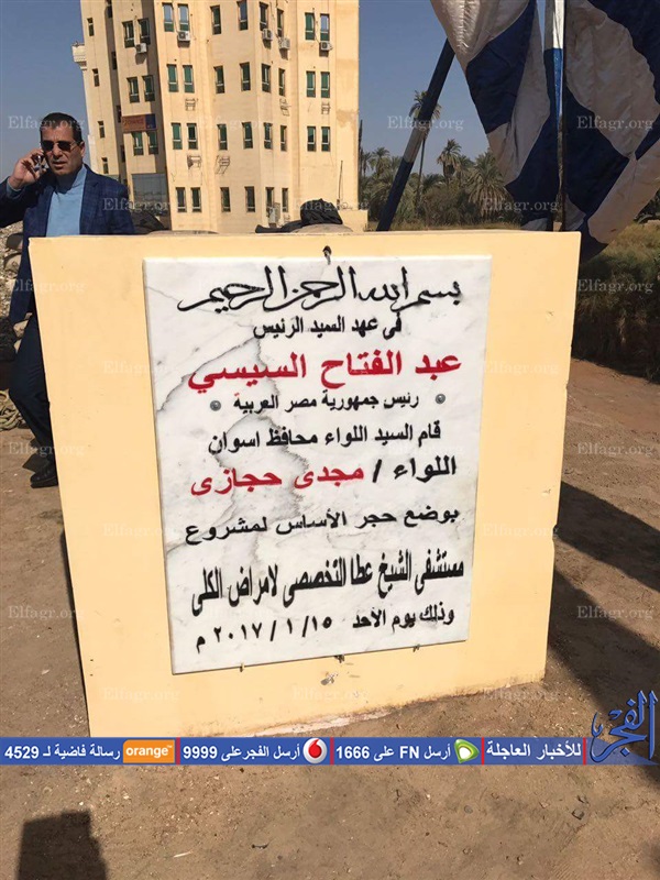 ويأتي وضع حجر الأساس للمستشفى، بمناسبة ﺍﺣﺘﻔﺎﻻﺕ محافظة أسوان بعيدها ﺍﻟﻘﻮﻣﻲ.