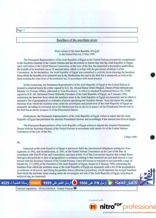 وبالعودة إلى الوراء قليلًا وبالبحث عن الوثائق التي صدرت خلاف ذلك، تبين أن وزارة الخارجية المصرية أصدرت بتاريخ الإثنين الموافق 11/أبريل/2016، وثائق تزعم فيها ملكية جزيرتي "تيران وصنافير" للمملكة العربية السعودية.