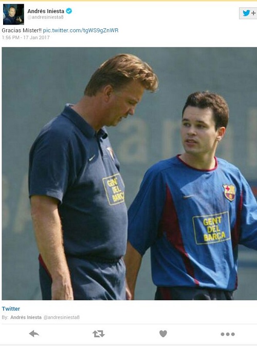 موقع التواصل الإجتماعي تويتر صورة تجمعه بفان جال عندما كان مدرباً لبرشلونة، قائلاً