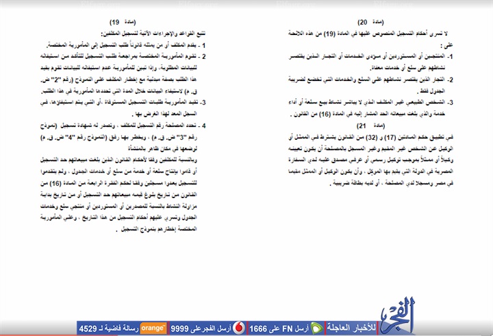 ننفرد بنشر النسخة النهائية لمشروع اللائحة التنفيذية لقانون الضريبة على القيمة المضافة أخبار مصر السبت 21/يناير/2017 - 12:22 ص 1/21/2017 12:22:00 AM منى صموئيل تنفرد بوابة "الفجر" بنشر النسخة النهائية لمشروع اللائحة التنفيذية لقانون الضريبة على القيمة المضافة، والمزمع إصداره خلال أيام. قانون الضريبة على القيمة المضافة قانون الضريبة انفراد الفجر القيمة المضافة أخبار مصر اليوم أخبار مصر أخبار عاجلة