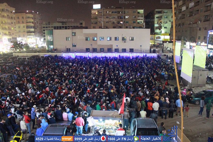 مئات المشجعين يتابعون مباراة مصر وغانا بميدان الحصري (صور)
