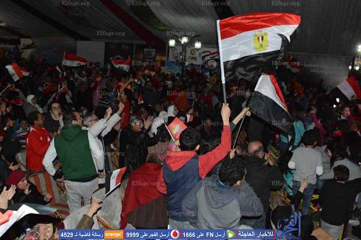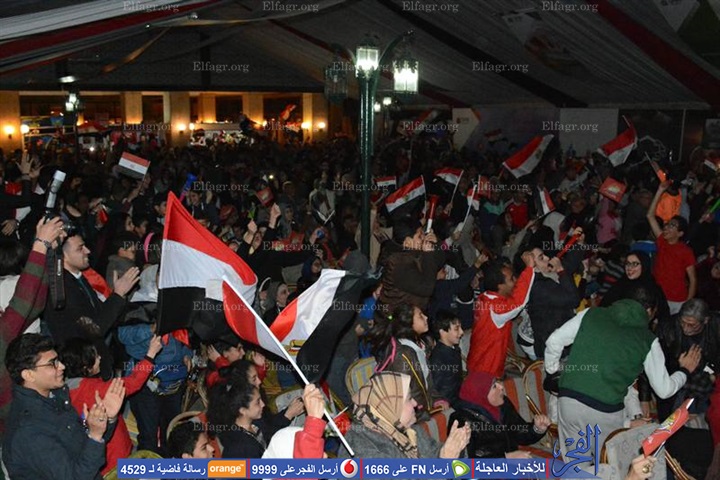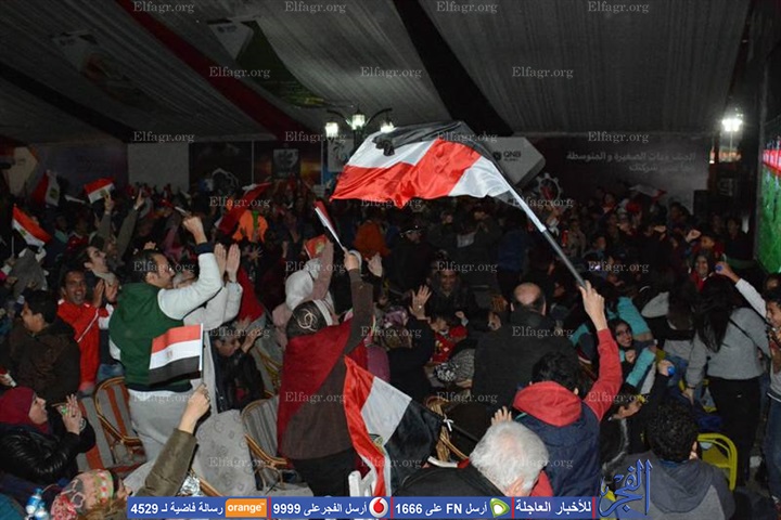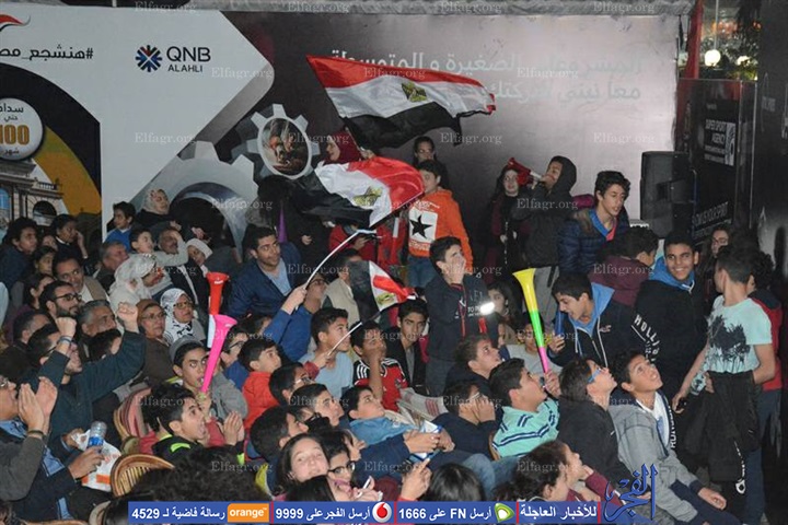 وردد المشاركون في متابعة المباراة هتافات "مصر.. مصر.. مصر، تحيا مصر، الفوز لمصر".