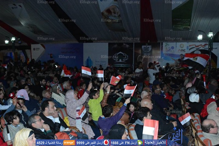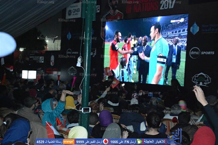 مئات المصريين يتابعون مباراة مصر والكاميرون بنادي الصيد وفرحة الجمهور بالهدف الأول