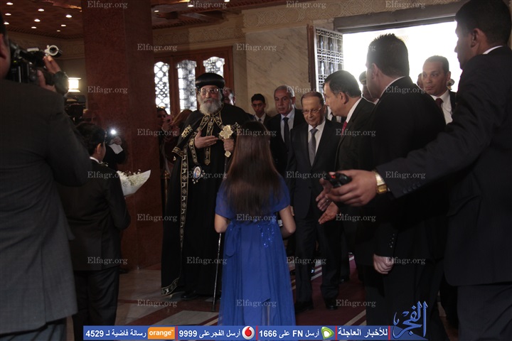 لقاء تاريخي بين الرئيس اللبناني والبابا تواضروس بالكاتدرائية (صور)