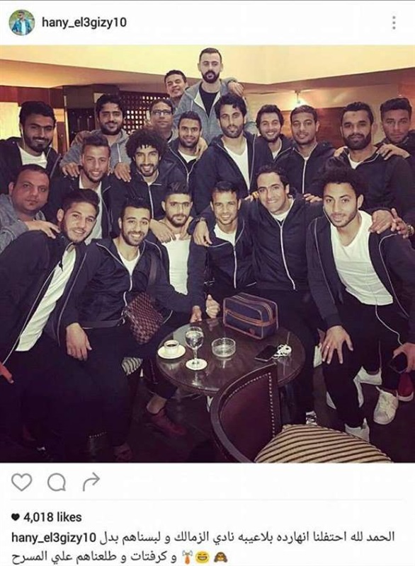 ونشر العجيزي صورة لفريق الإنتاج عقب الفوز على الزمالك بهدفين مقابل هدف واحد وكتب عليها "الحمد لله احتفلنا انهاردة بلاعيبة نادي الزمالك ولبسناهم بدل وكرفتات وطلعناهم على المسرح" وذلك في إشارة إلى تصريح لجنش أكد فيه أنه يلعب على العامل النفسي للمنافس قائلًا "بطلعه المسرح وألبسه بدلة وكرافتات"