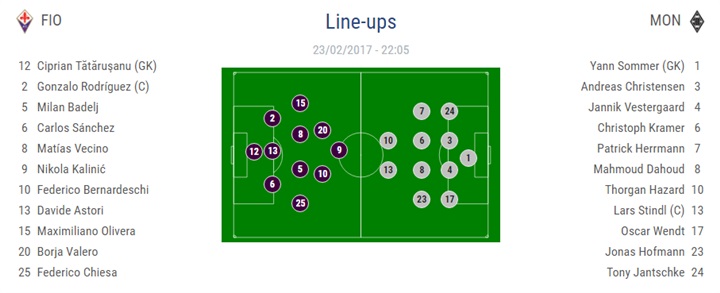 وبوروسيا مونشنجلادباخ الألماني، تشكيلة فريقهما في المباراة التي ستجمع الفريقين،