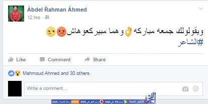 سخر عدد من رواد موقع التواصل الاجتماعي "فيسبوك" من جملة "جمعة مباركة" التي يتداولها نشطاء غير ملتزمين دينيًا، حيث كتب حساب باسم "عبد الرحمن" قائلًا: "ويقولك جمعة مباركه وهما مبيركعهاش".