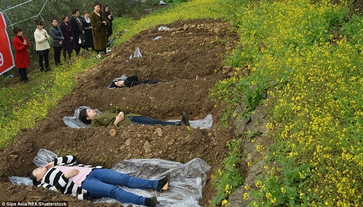 مؤخرًا استقطبت مجموعة من النساء الصينيات اهتمام وسائل الإعلام لقيامهن بطقوس غريبة للغاية لمواجهة الحالة النفسية نتيجة الطلاق وفشل الزواج. فالتُقطت صور لنساء يرقدن في قبور في ضواحي مدينة تشونغتشينغ، وقد أُطلق على هذه الطقوس “تأمل القبور” حيث يزعمن بقدرة ذلك على مساعدتهن في مواجهة أزمة الطلاق.