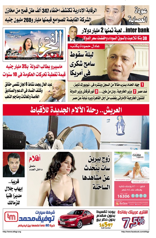 عدد الفجر الجديد : عدد مميز بادر بحجز نسختك العدد الأسبوعي الأربعاء 01/مارس/2017 - 10:23 ص 3/1/2017 10:23:00 AM عدد الفجر الجديد : عدد مميز بادر بحجز نسختك عدد الفجر عادل حمودة جريدة الفجر الورقية جريدة الفجر الاسبوعية العدد الورقى العدد الاسبوعي