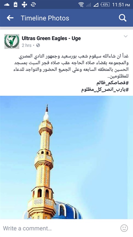 بيانًا جاء نصه كالتالي: "غداً ان شاءالله سيقوم شعب بورسعيد وجمهور النادي المصري