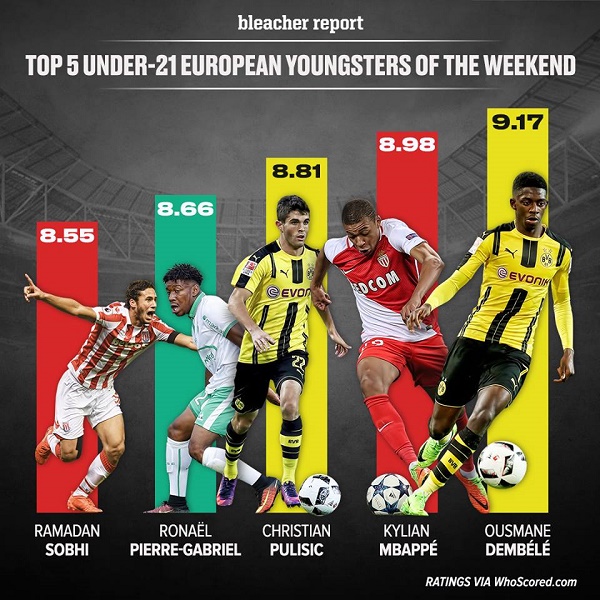 وحصل رمضان على درجة 8.55 فى المركز الخامس، و فى المرتبة الرابعة بيير جابريال لاعب سانت إتيان الفرنسي، و كريستيان بوليستتش لاعب دورتموند فى المرتبة الثالثة، ومبابي لاعب موناكو ثانيًا بينما تصدر القائمة ديمبلي لاعب دورتموند.