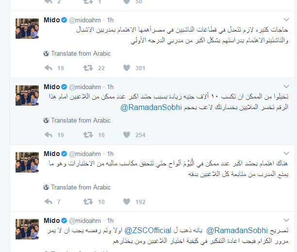 وكتب ميدو عبر حسابه الرسمي على تويتر: "تصريح رمضان صبحى أنه ذهب للزمالك أولا وتم رفضه يجب ألا يمر مرور الكرام، فيجب إعادة التفكير فى كيفية اختيار اللاعبين ومن يختارهم".