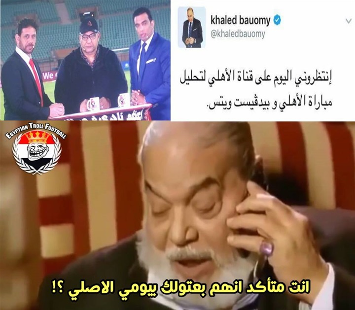 وجاءت سخرية فيس بوك لأن بيومي فؤاد ترك التمثيل لتحليل مباراة الأهلي وبيدفيست التي انتهت بفوز الأحمر بهدف نظيف باستاد السلام.