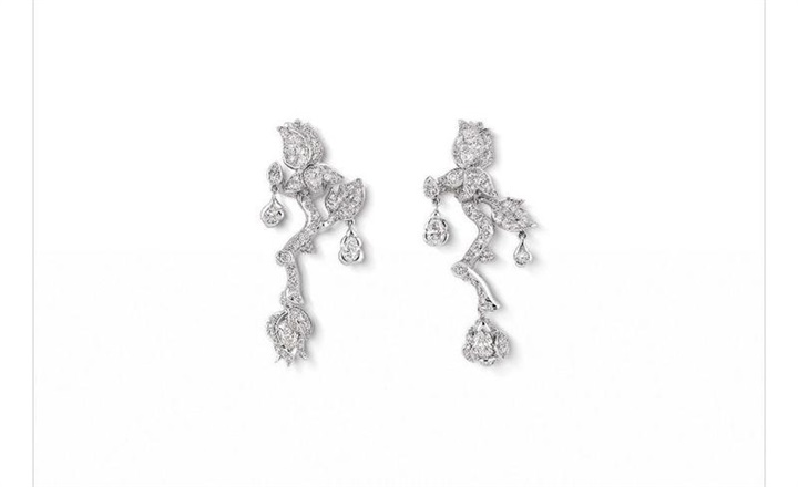 ومن تصاميم الأقراط الماسية التي لفتت نظرنا أيضاً كانت هذه الأقراط من مجموعة روز ديور باغاتيل Rose Dior Bagatelle من ديور فاين جوليري Dior Fine Jewellery والمستوحاة من الطبيعة بتصميمها الشبيه بالزهرة.