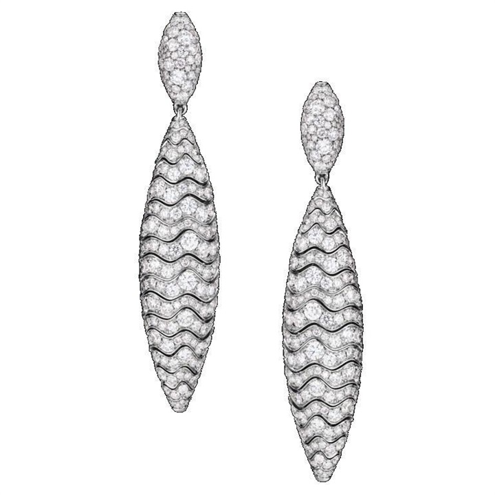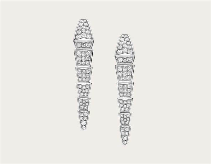 أما دار بولغري Bulgari فقد قدّمت أقراطاً ضمن مجموعتها الشهيرة سيربانتي Serpenti مصنوعة من الذهب الأبيض ومرصّعة بالكامل بأحجار الماس وبتصميم الأفعى الناعم.