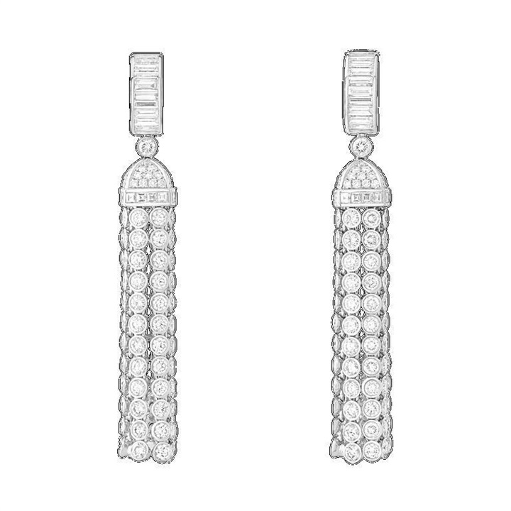 جاءت تصاميم الأقراط التي قدمتها دور المجوهرات العالمية لهذا العام، غنية بحجر الألماس، مثل:-