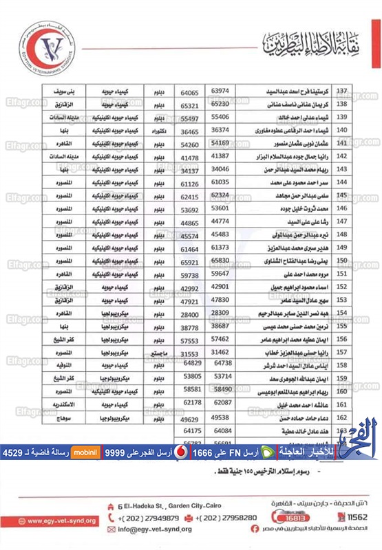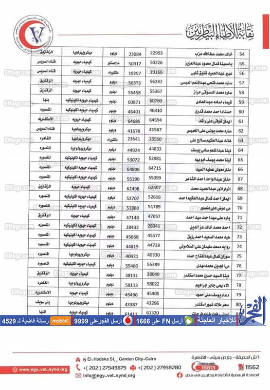 بالأسماء.. قبول دفعة جديدة من تراخيص معامل التحاليل للأطباء البيطريين (صور)