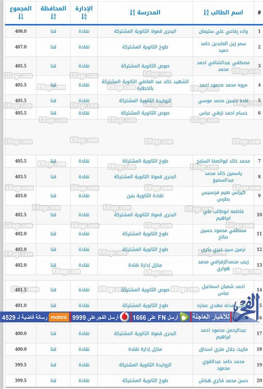 أسماء أوائل الشهادة الثانوية العامة في نقادة بقنا