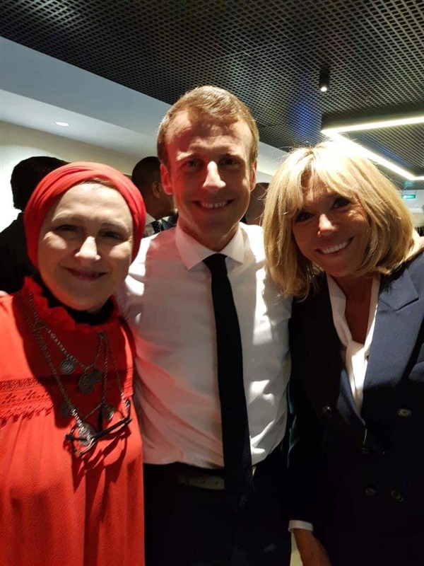 وتبادلت كلا من حرم الرئيس الفرنسي وحرم أبوريدة التهاني