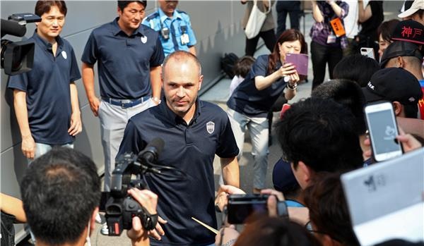 ووصل إنييستا، الذي كان قد تم الإعلان عن انضمامه للفريق في مايو الماضي، وقدم في مدينة كوبي، يوم 26 من نفس الشهر، لمطار كانساي بمدينة أوساكا، اليوم الأربعاء.