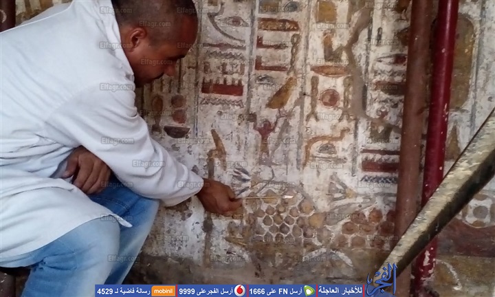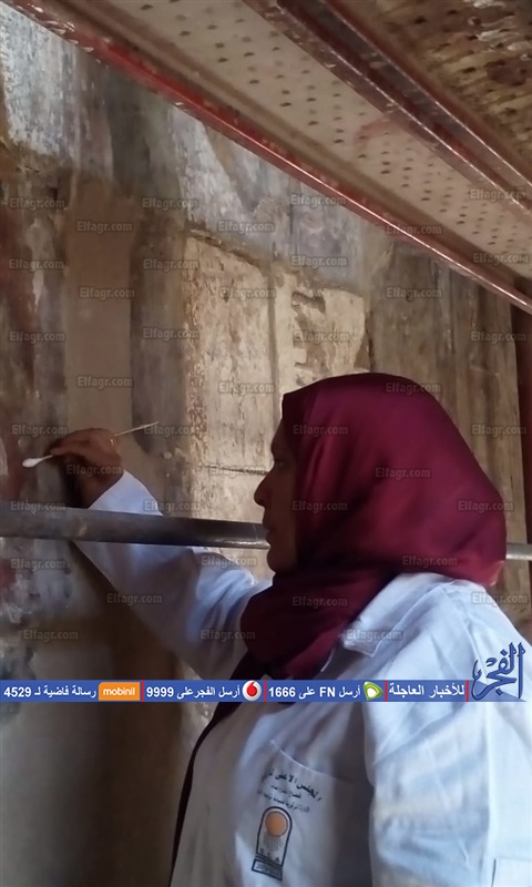 وأضاف د. وزيري أن الفريق قد اقترب  أيضا على الانتهاء من أعمال المرحلة الأخيرة من أعمال تنظيف وترميمالنقوش الجدارية الموجودة بالمقصورة