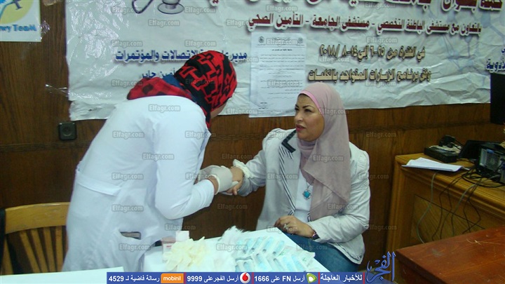 وتابعت "النمر" أن الحملة تتم بالتعاون مع قطاع خدمة المجتمع وشئون البيئة ومستشفى الباطنة التخصص ومستشفى الجامعة والهيئة العامة للتامين الصحى وشركة فاركو للادوية التى توفر كافة الادوات اللازمة للتحليل بالمجان.