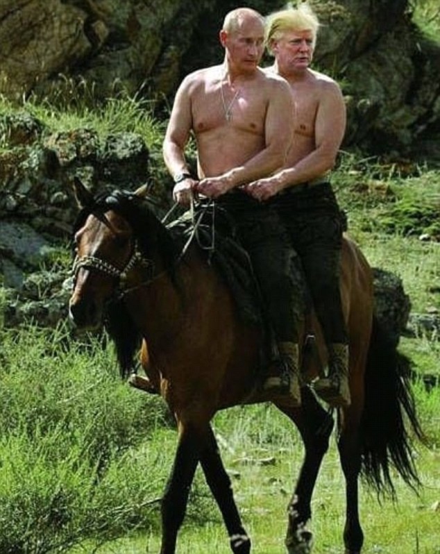 وانستاجرام"، حيث استخدم أحدهم صورة مشهورة لبوتين عارى الصدر، وترامب يركب