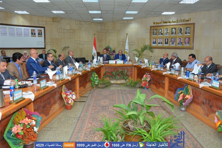 عقد مجلس جامعة أسيوط جلسته الدورية عن شهر يوليو وذلك بمشاركة المهندس ياسر الدسوقى محافظ أسيوط، وبرئاسة الدكتور أحمد عبده جعيص رئيس الجامعة وبحضور المهندس ياسر الدسوقى محافظ أسيوط، والدكتور محمد عبداللطيف نائب رئيس الجامعة لشئون خدمة المجتمع وتنمية البيئة ، والدكتور طارق الجمال نائب رئيس الجامعة لشئون الدراسات العليا والبحوث والدكتور عاطف أبوالوفا نائب رئيس الجامعة لفرع الوادى الجديد، إلى جانب لفيف من أعضاء المجلس من عمداء الكليات المختلفة، حيث تعد تلك الجلسة هى أخر جلسات مجلس الجامعة برائاسة الدكتور احمد جعيص وبحضور الدكتور محمد عبداللطيف وذلك لبلوغهما السن القانونية للمعاش.