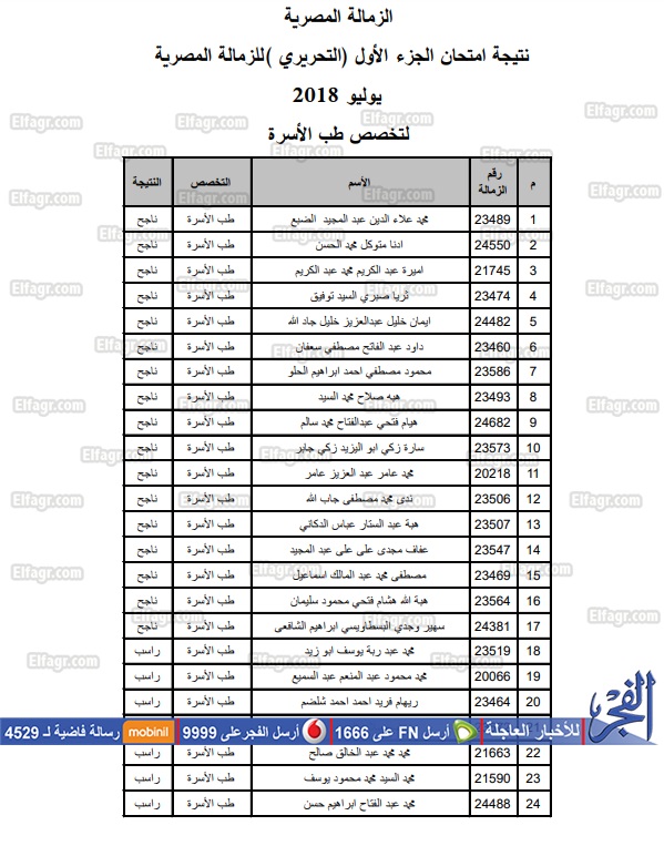 حصلت "الفجر" على نتيجة امتحان الجزء الأول لزمالة طب الأسرة في برنامج الزمالة المصرية، "دور يوليو 2018".