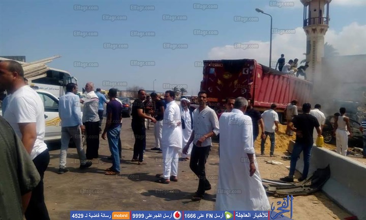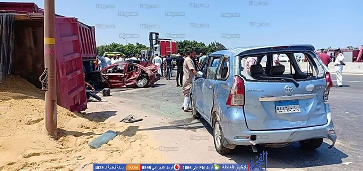 عاجل.. الصور الأولى لتصادم "مقطورة" مع 14 سيارة بصحراوي الإسكندرية